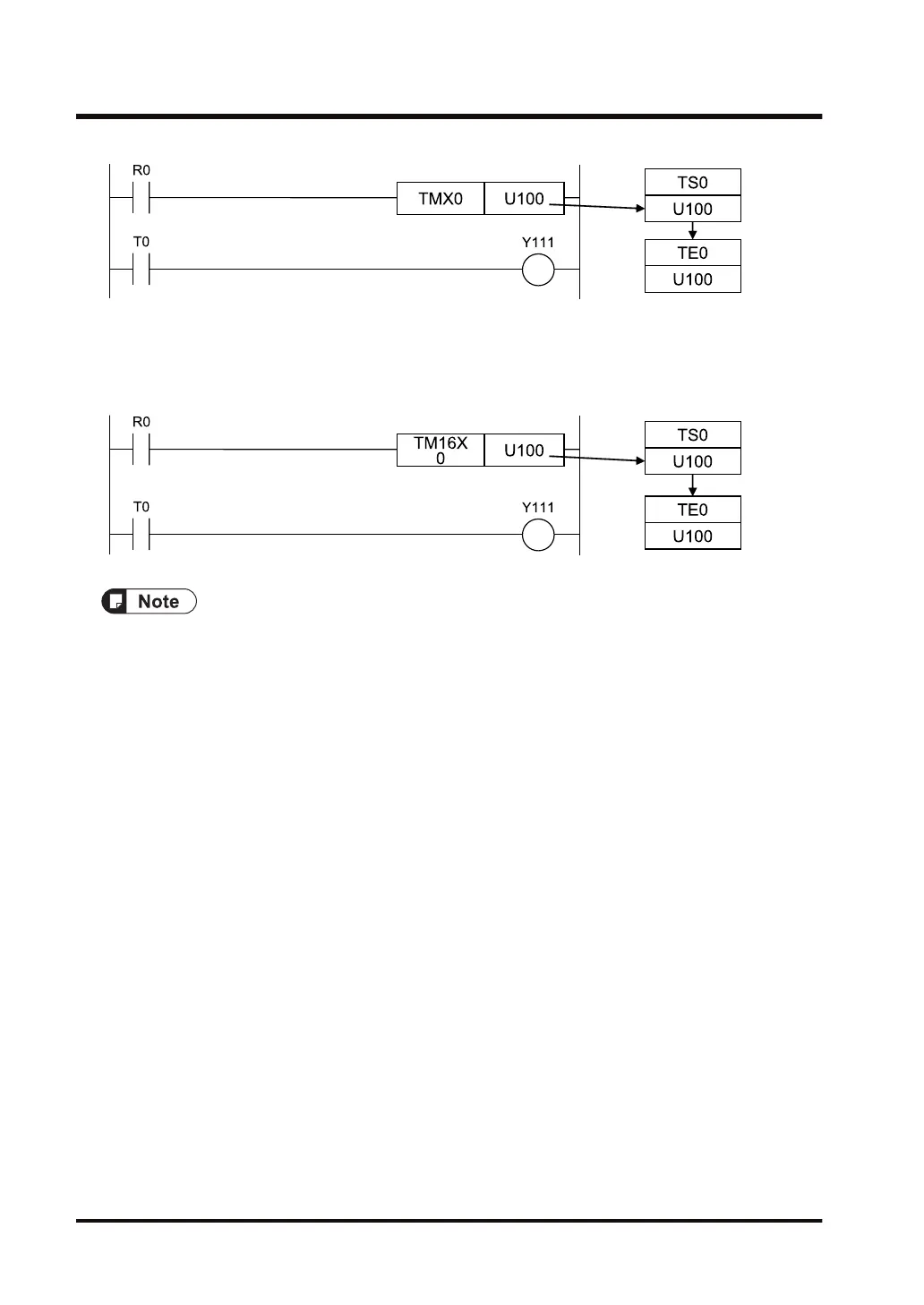 TS0 is set in the elapsed value area TE0 when the input of R0 rises. The setting range of a