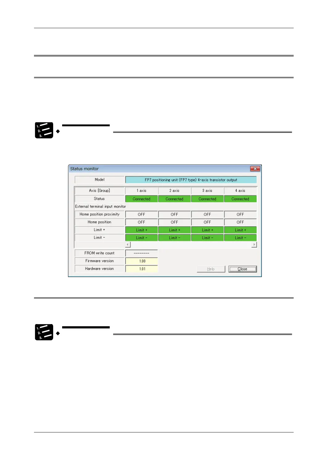 • It is possible to monitor the connection state of each axis and input state of the external