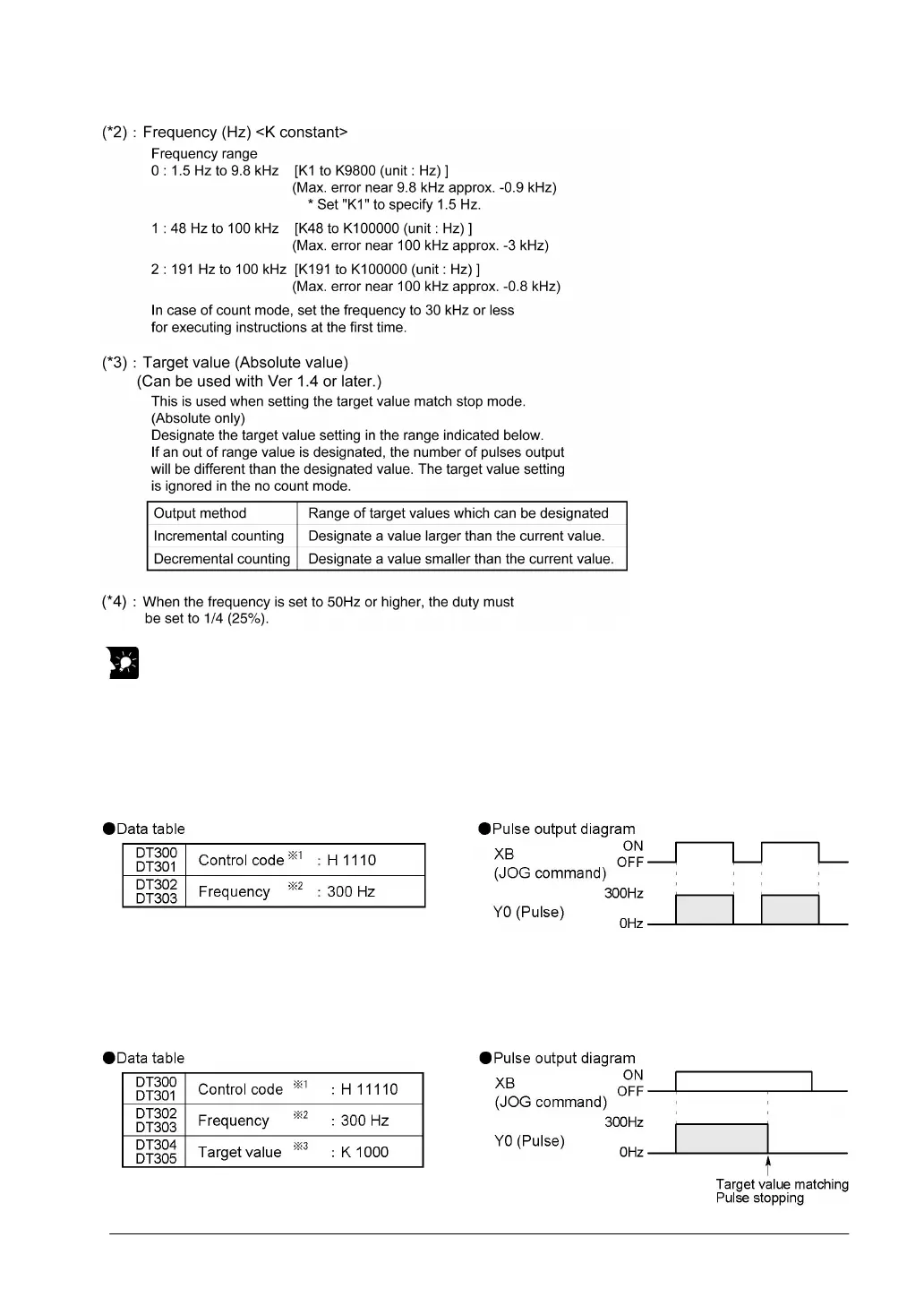 With FPΣ Ver 1.4 or later, a target value at which pulse output stops can be specified for jogging
