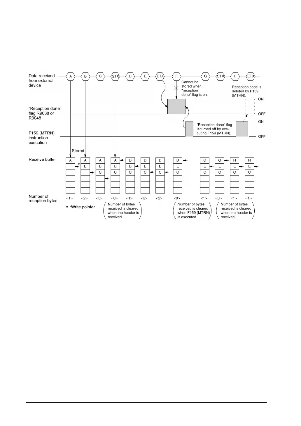 • Also, When F159 (MTRN) is executed, the number of bytes received is cleared, and the address (write