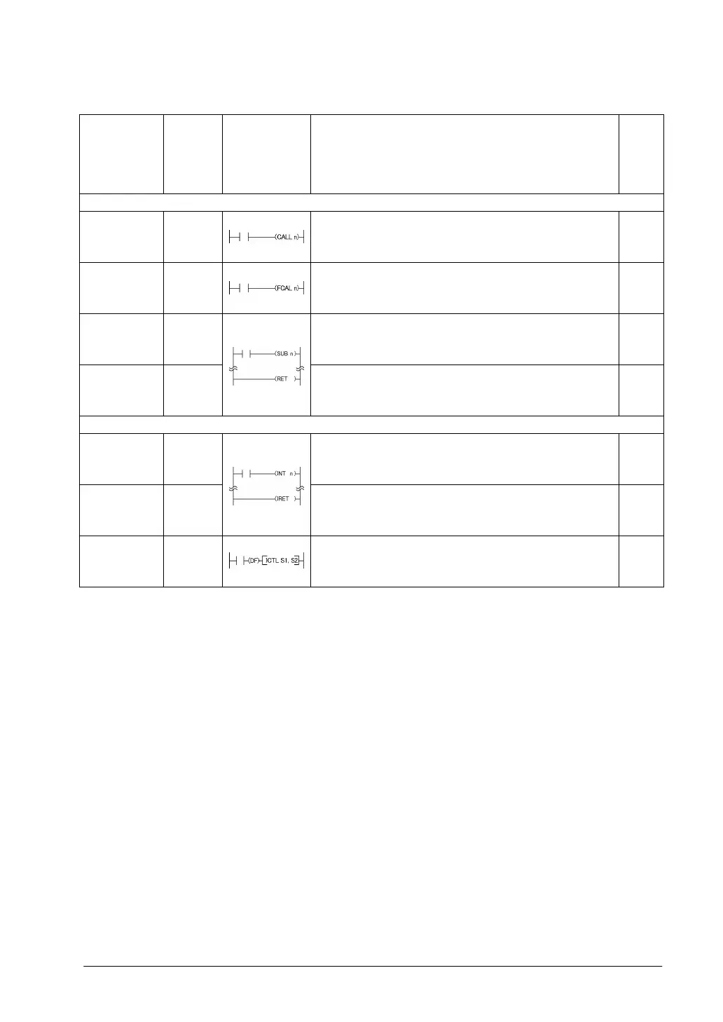 FCAL Executes the specified subroutine. When returning to the