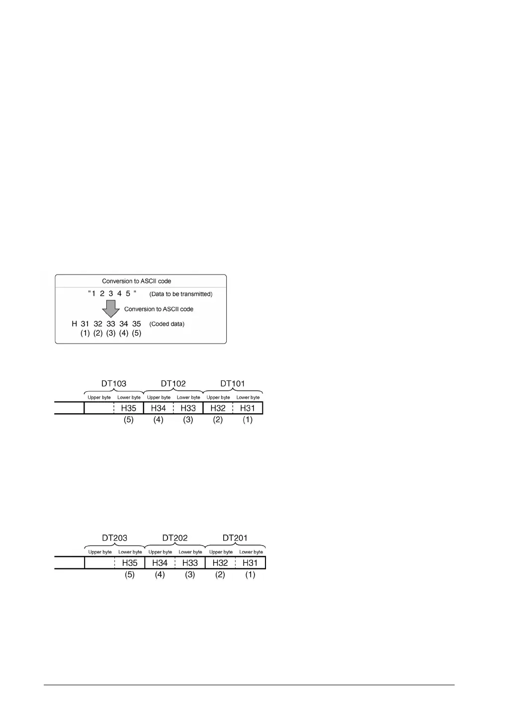 starting from the next register (DT101), in two-byte units consisting of the upper and the lower byte.