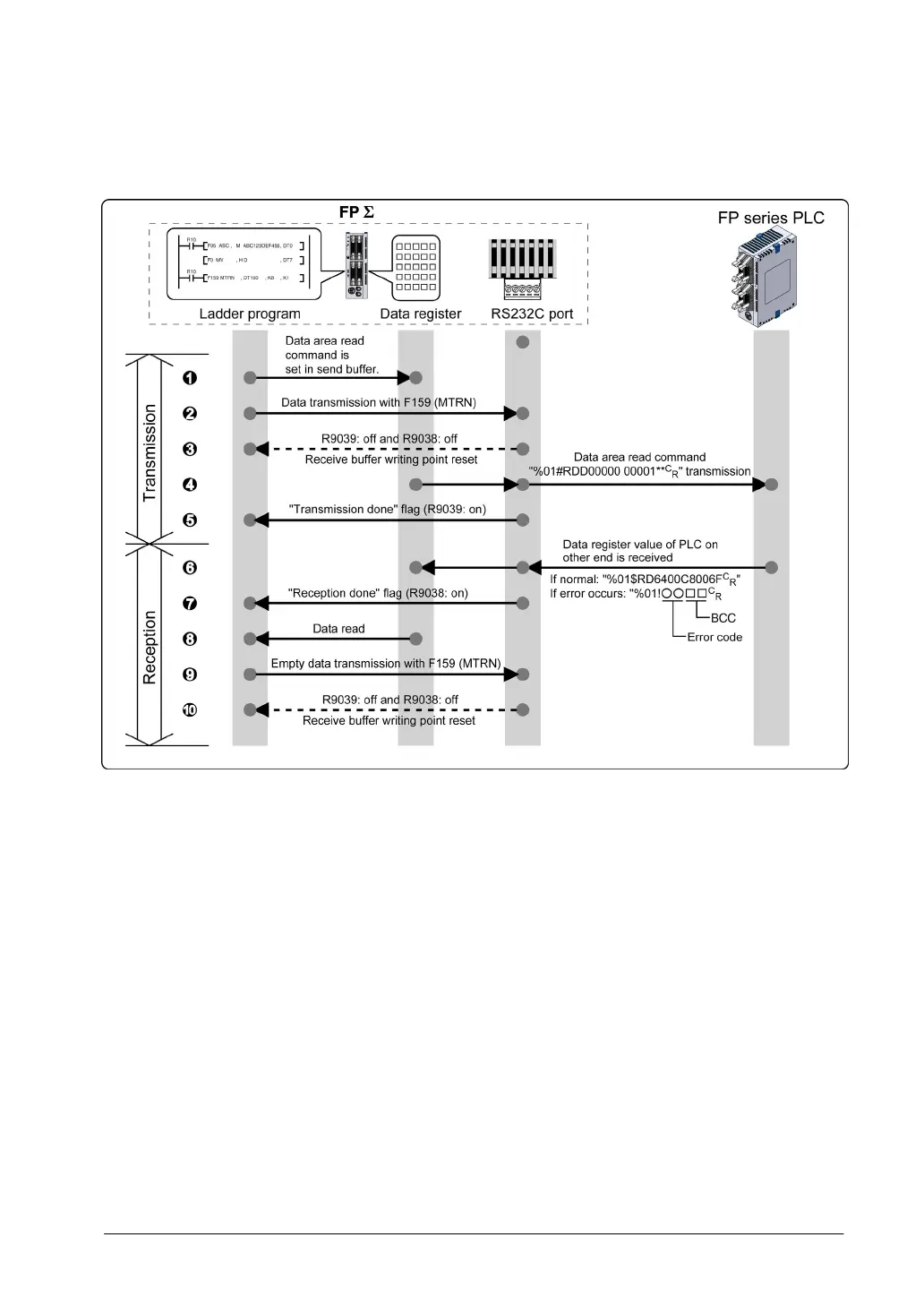 In this example, an FP series PLC is connected to COM1 port. K100 and K200 are respectively being
