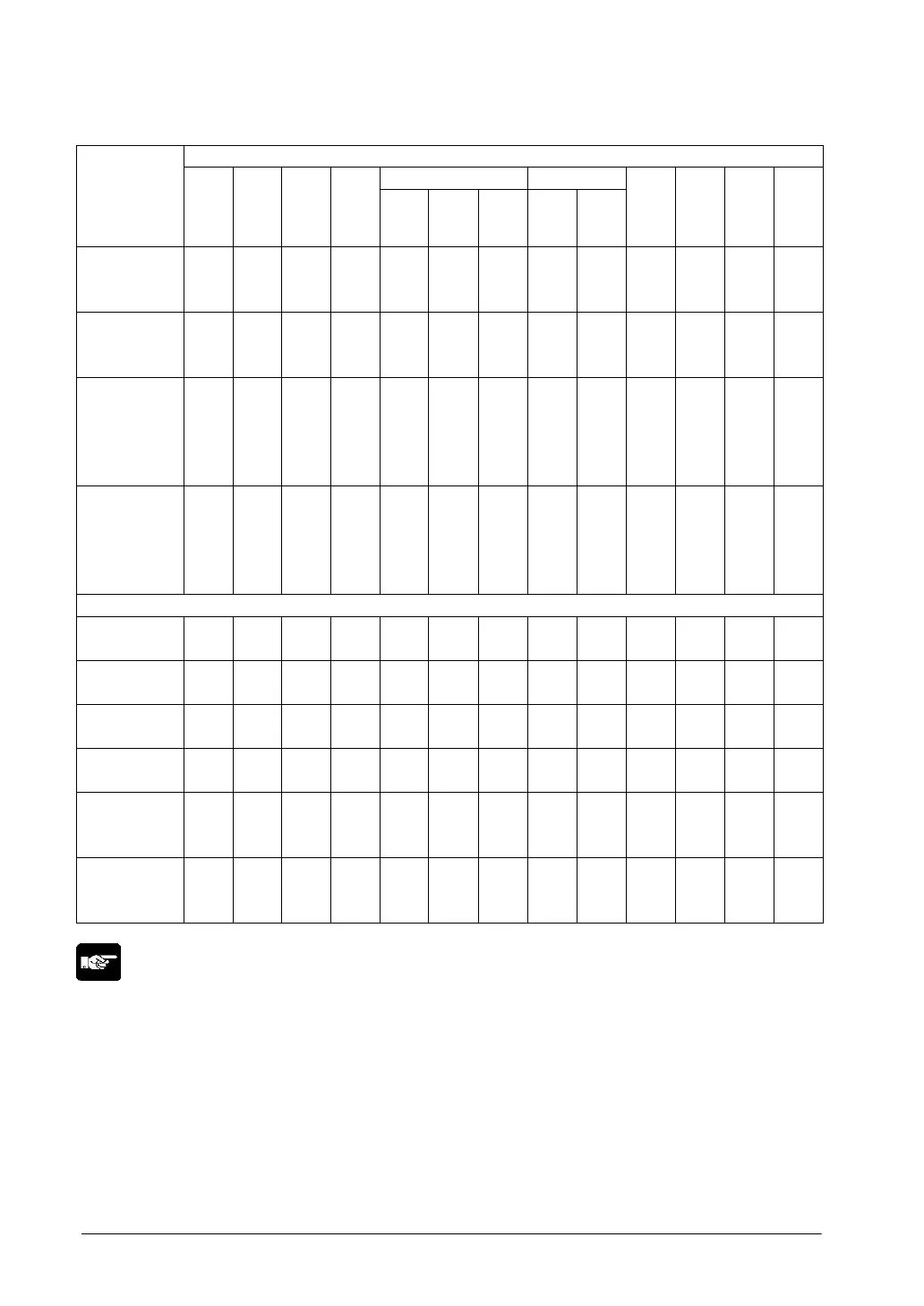 • A: Available, N/A: Not available