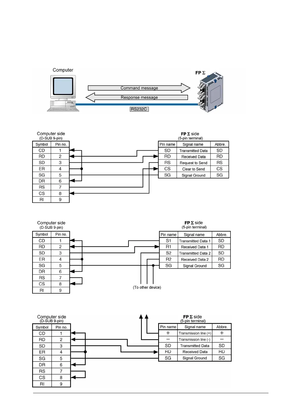 For a 1:1 computer link between the FPΣ and a computer, an RS232C cable is needed. Communication
