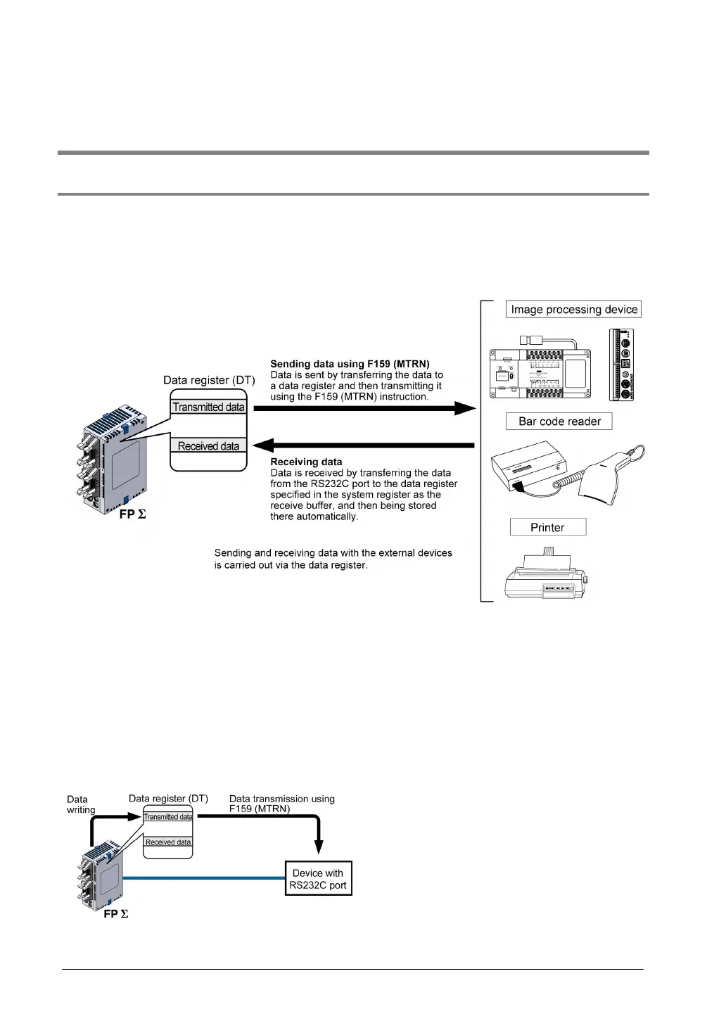 • Data is read from and written to an external device connected to the COM port by means of an FPΣ