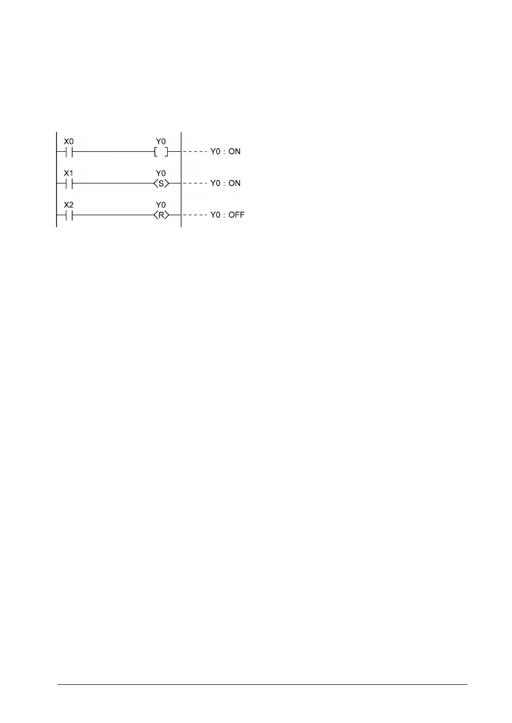 Output to the same output relay Y0 with OT, KP, SET and RST instructions.