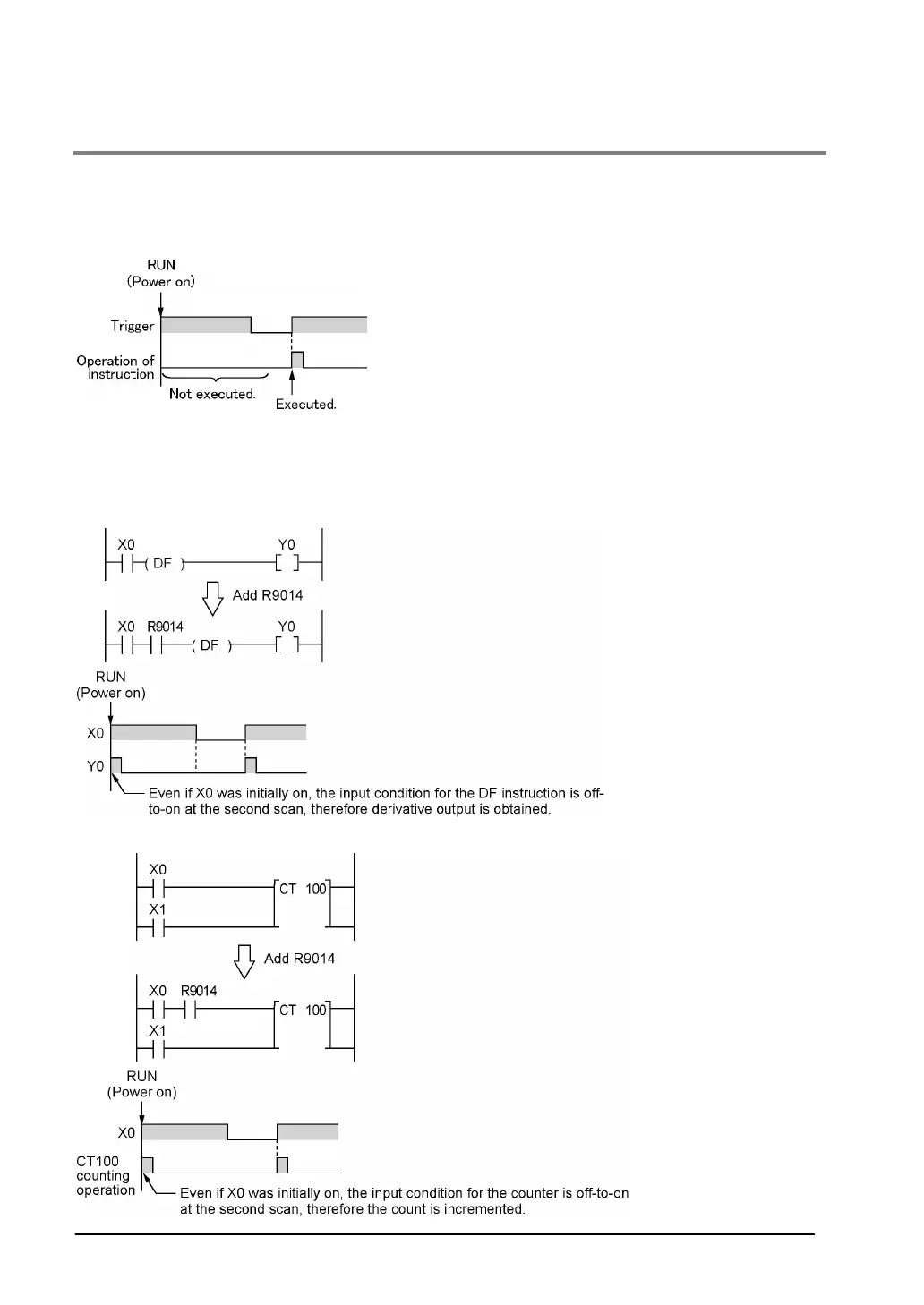 • If you need to execute an instruction when the trigger (execution condition) is on prior to switching to