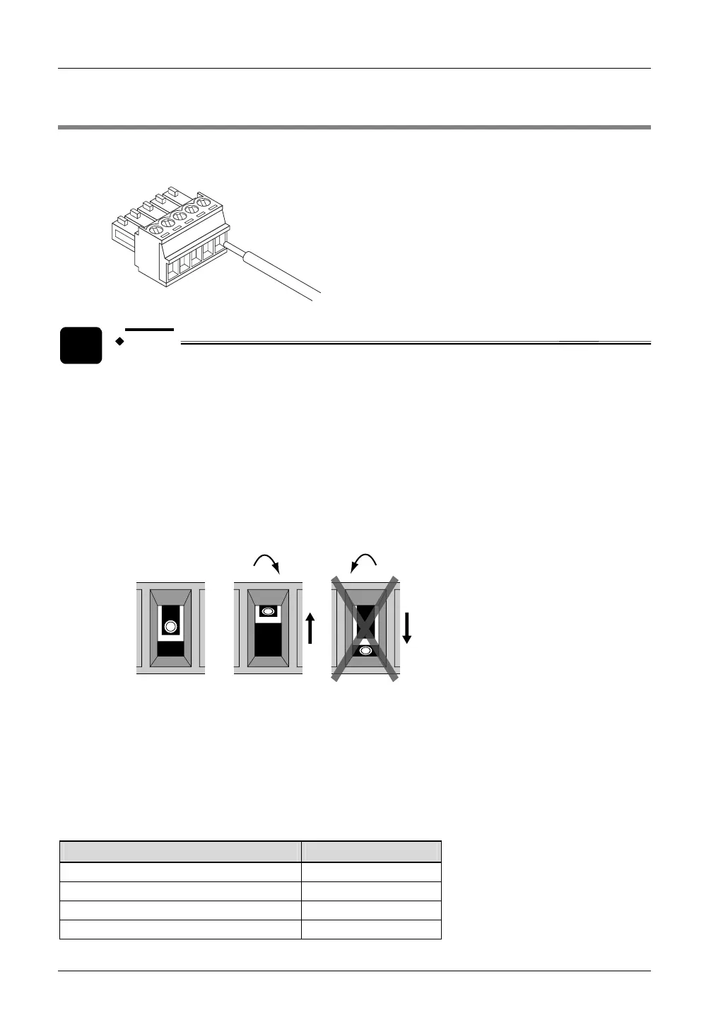 • If the socket in the terminal block closes upon counter-clockwise rotation,