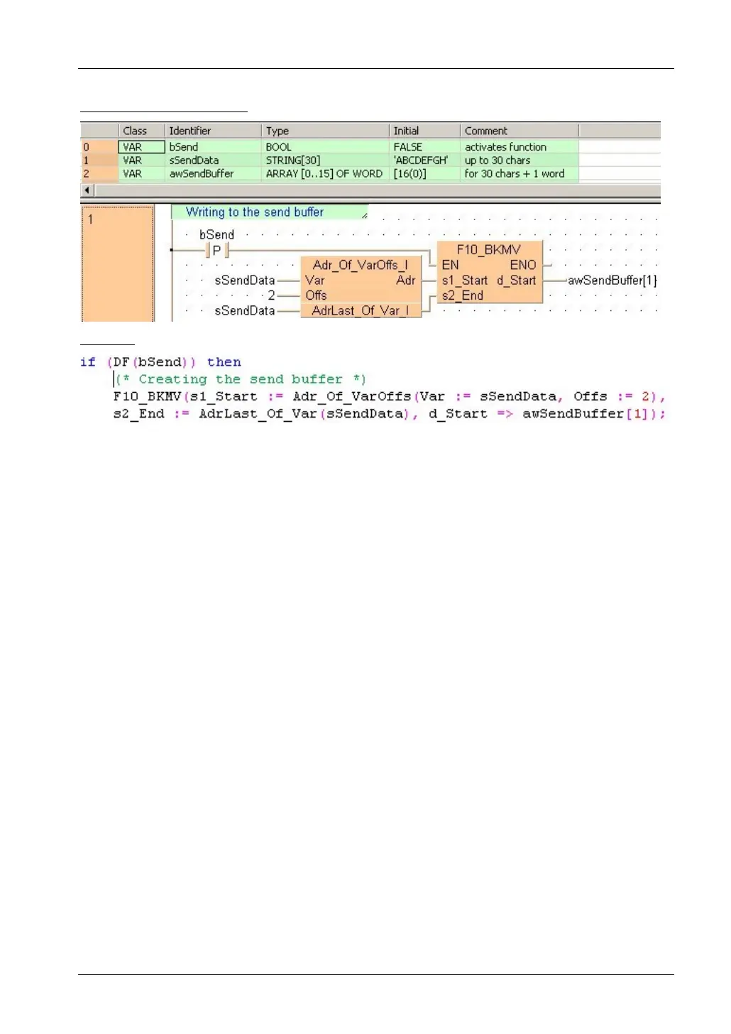 When the variable bSend is set to TRUE, the function F10_BKMV copies the characters of