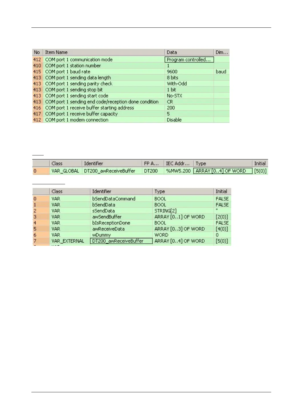 address and capacity. In this example, the starting address is 200 (VAR_GLOBAL