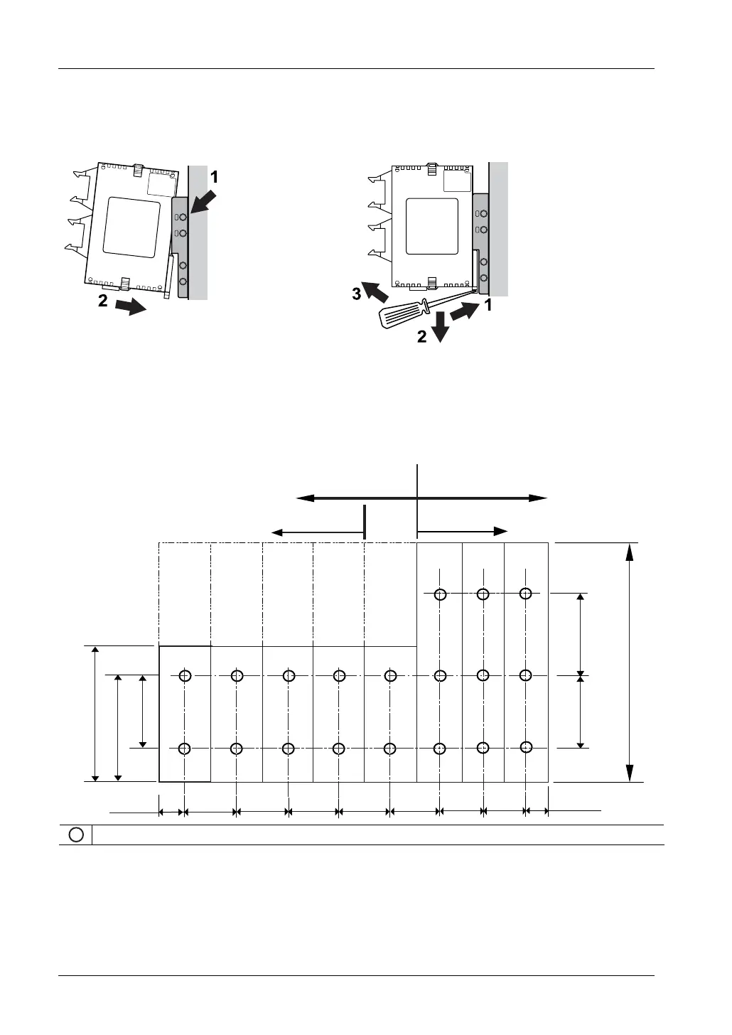 Installation and removal of the unit is similar to the procedure using DIN rails: