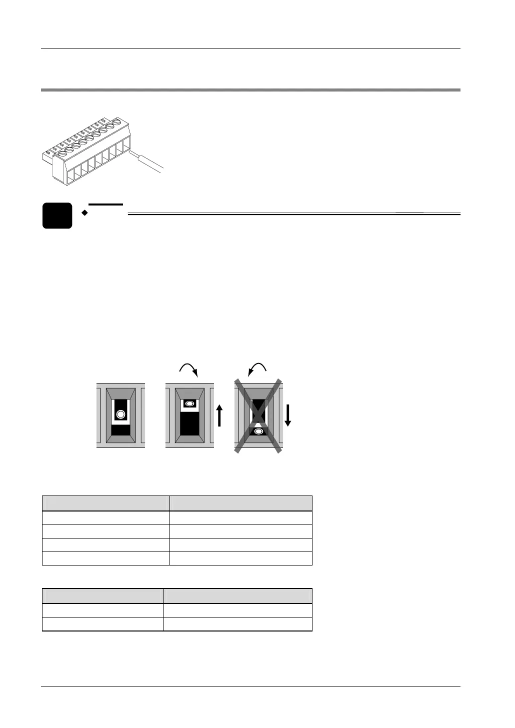 • If the socket in the terminal block closes upon counter-clockwise rotation,