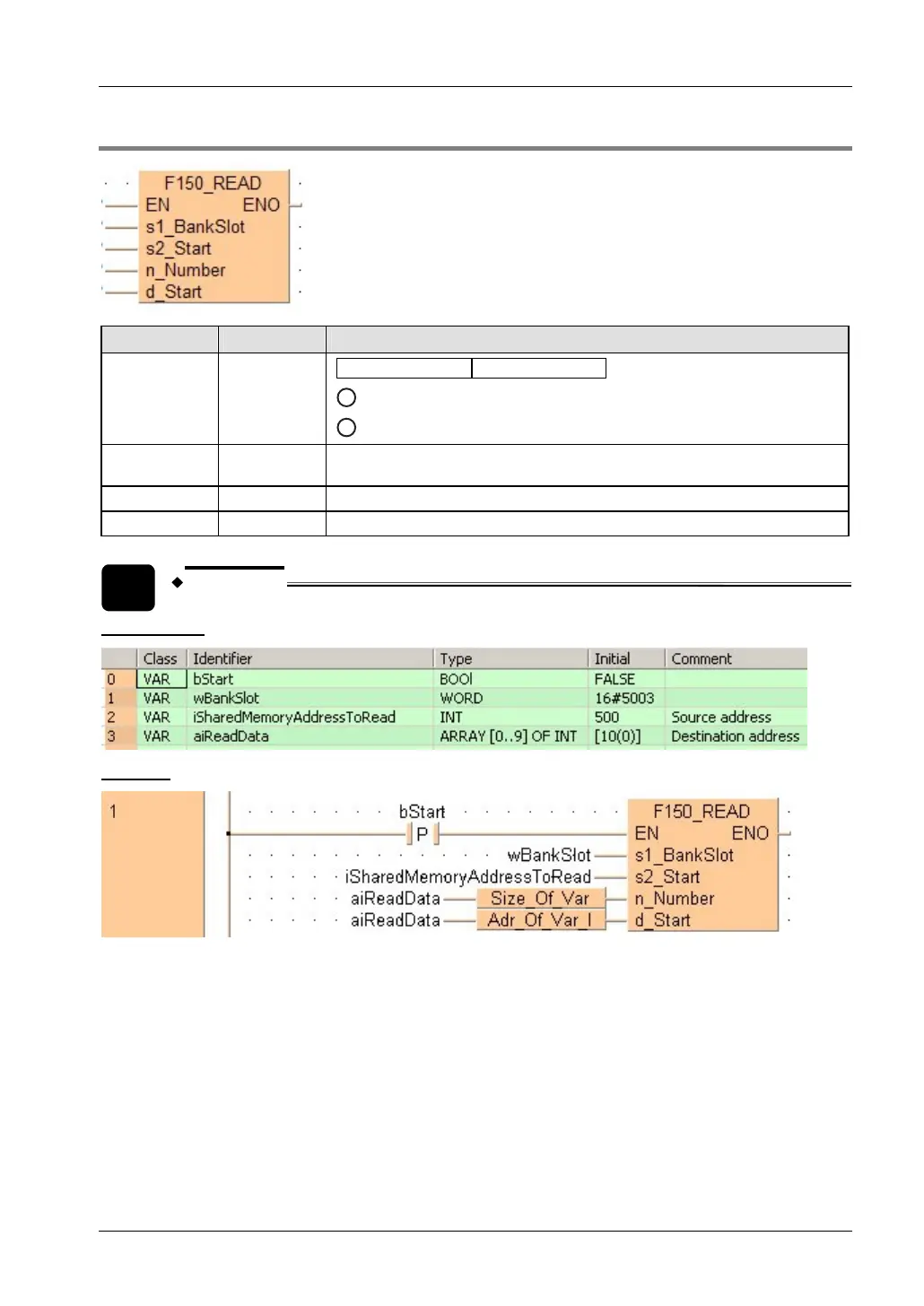 When Start turns to TRUE, 10 words are read from bank number 16#50 of the memory
