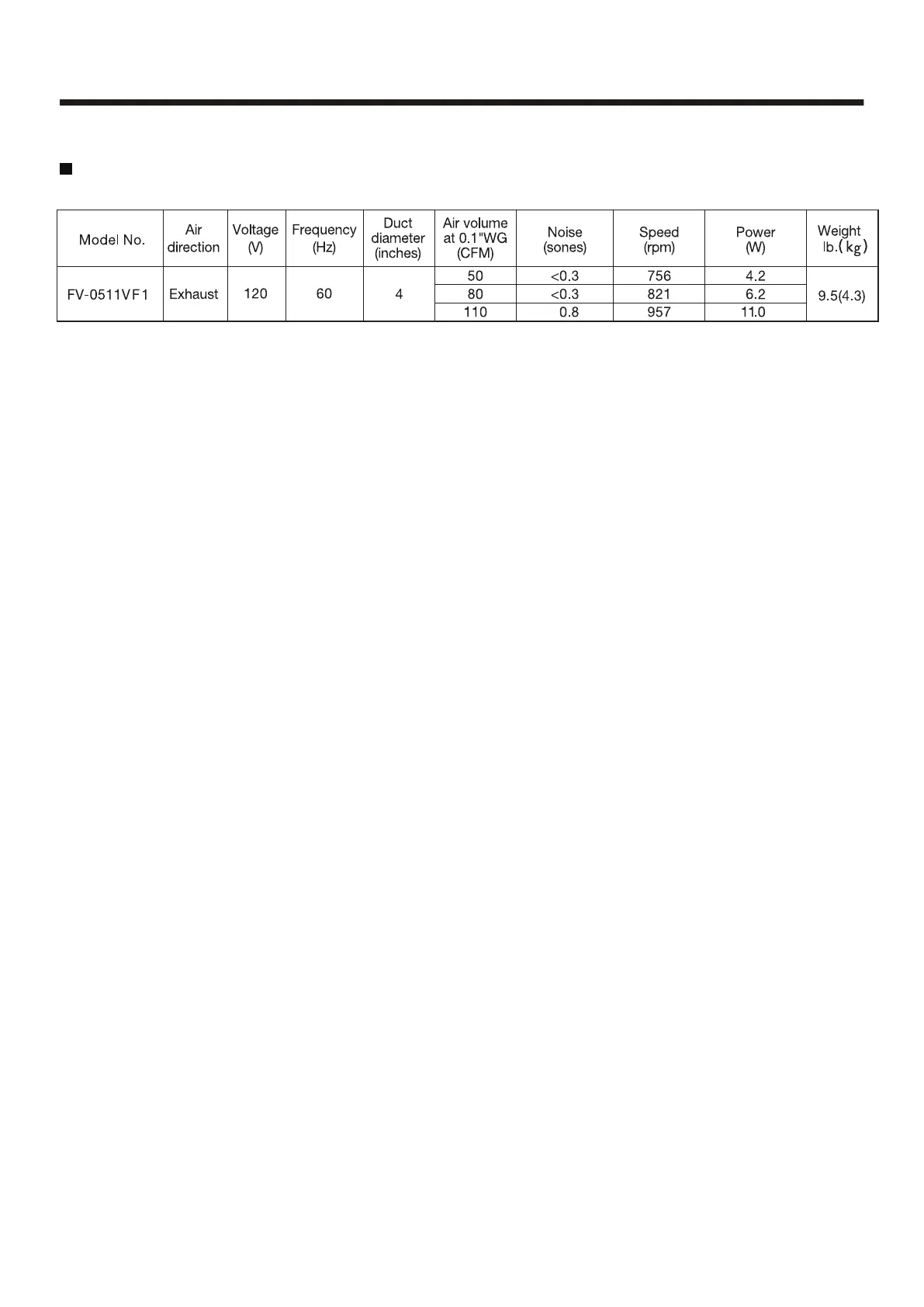 Panasonic FV-0511VF1 - 2: Specification