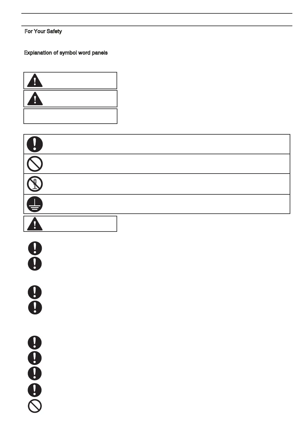 The following symbols are used to classify and describe the type of instructions to be observed.