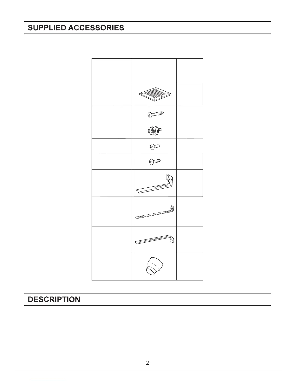 Panasonic FV-08VF2 - Supplied Accessories; Description