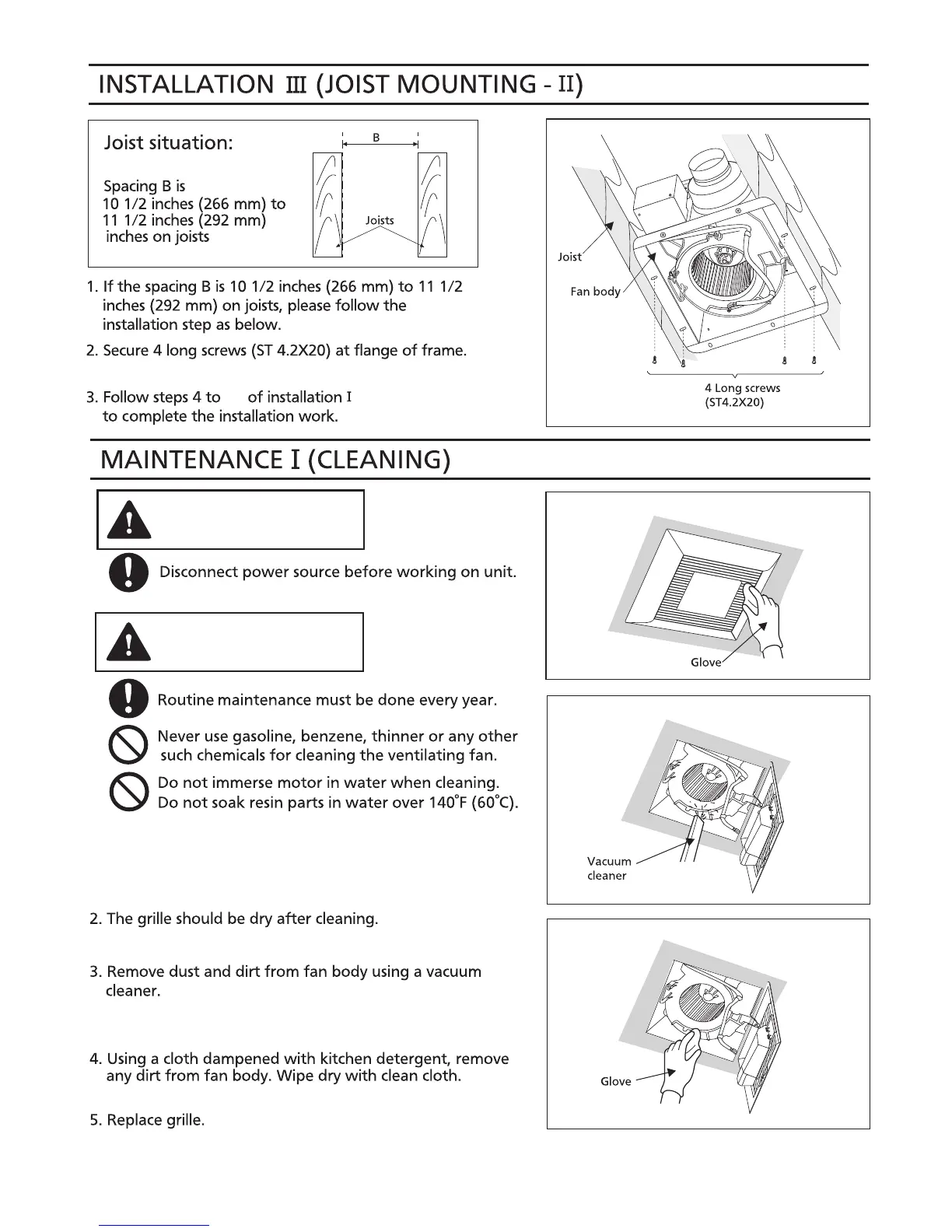 Panasonic FV-08VQL6 - Installation III: Joist Mounting (Part 2); Step 1: Aligning with Joists; Step 2: Securing Frame Flange; Step 3: Complete Installation