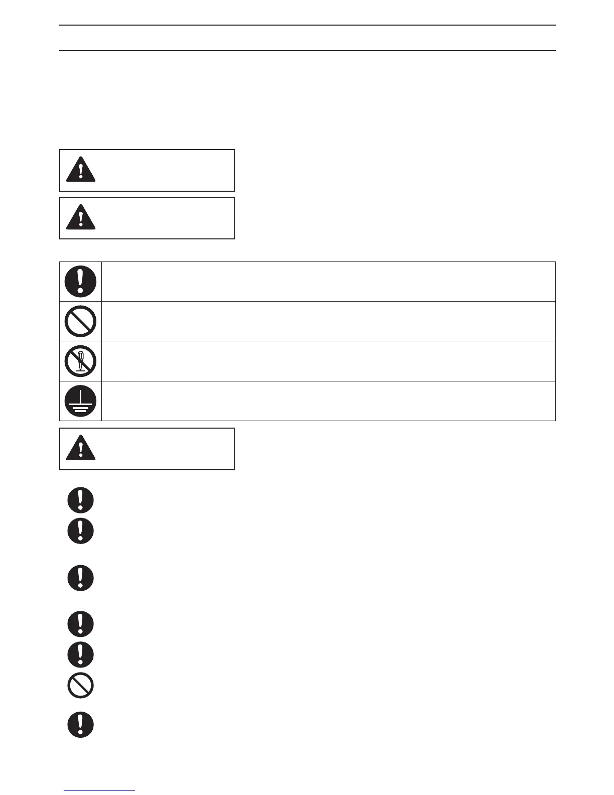 The following symbols are used to classify and describe the type of instructions to be observed.