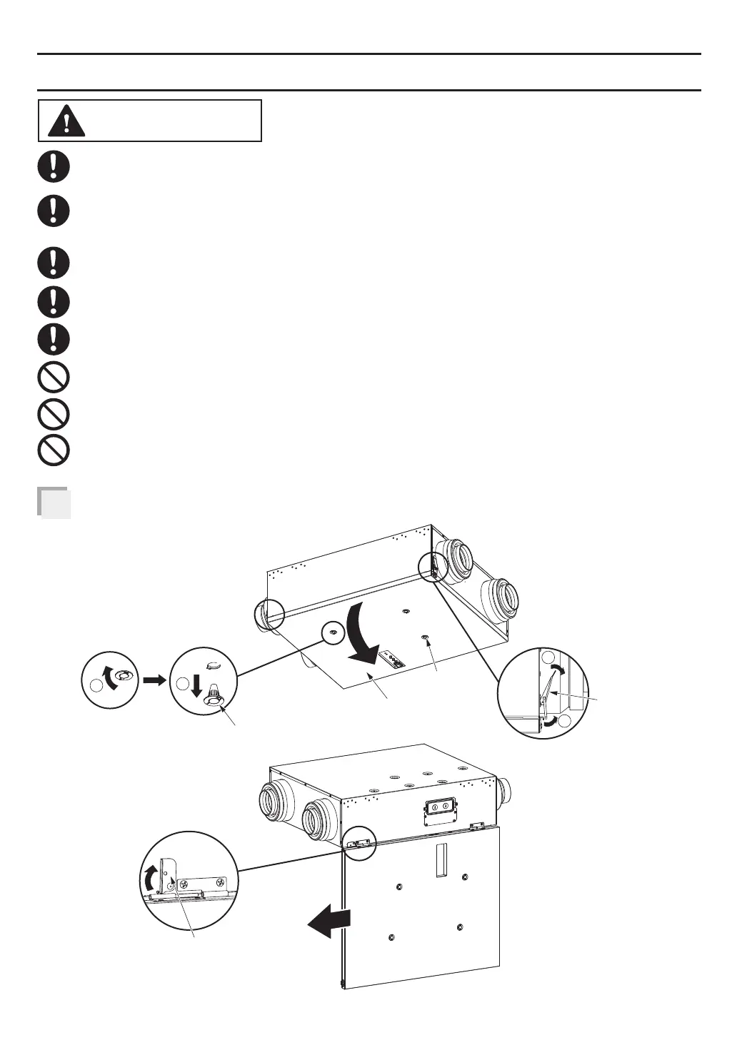 Please pay attention to dust, condensation water or parts that may drop down when