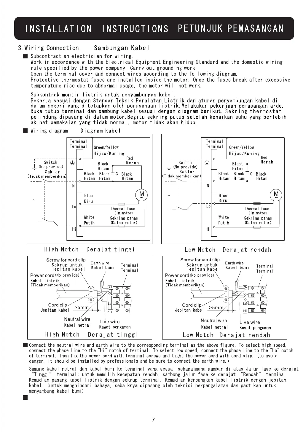 Dapat terjadi kerusakan pada motor jika penggunaan 2 (dua) produk atau lebih dengan dihubungkan pada satu sakelar