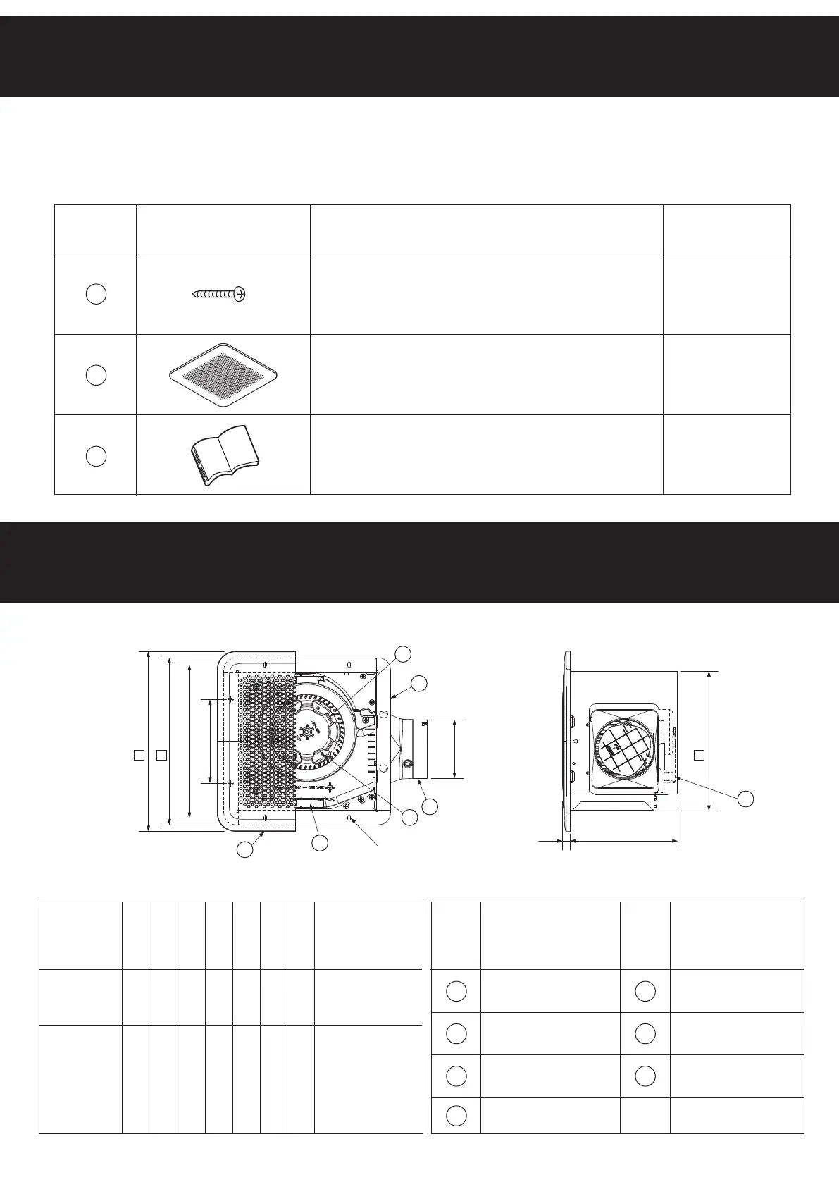 The following attachments are enclosed in the packing box of ventilating fan. Be sure to check if they are complete after