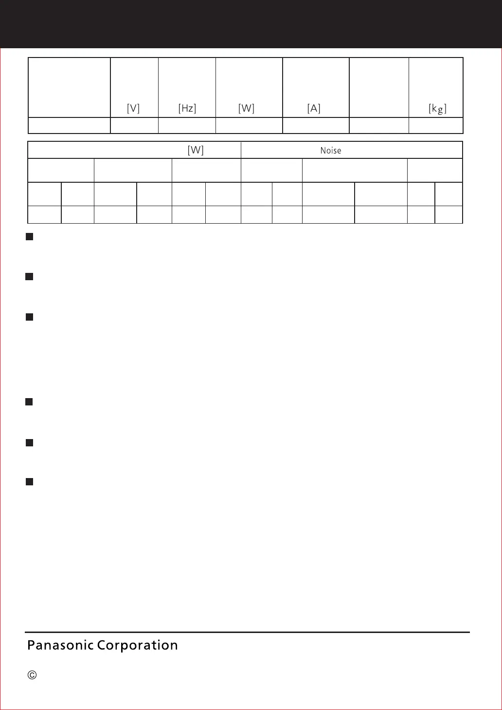 換氣風量、電氣特性、噪 音值等數據是在靜壓為0 Pa狀 態 下的數值。