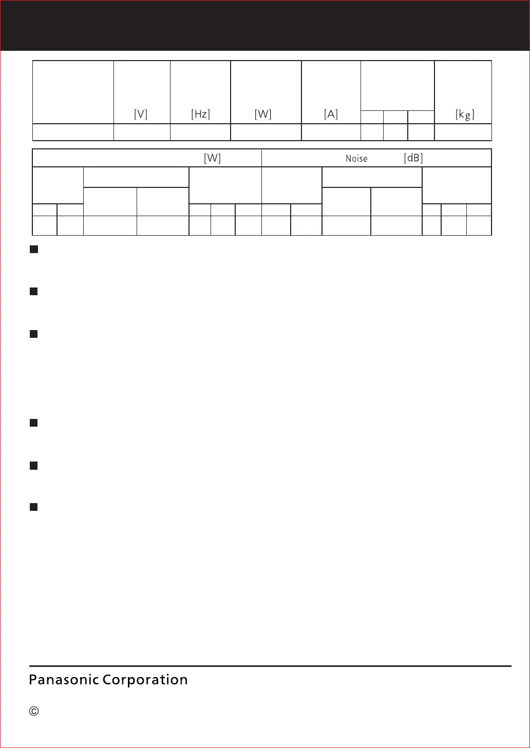 換氣風量、電氣特性、噪音值等數據是在靜壓為0 Pa狀態下的數值。