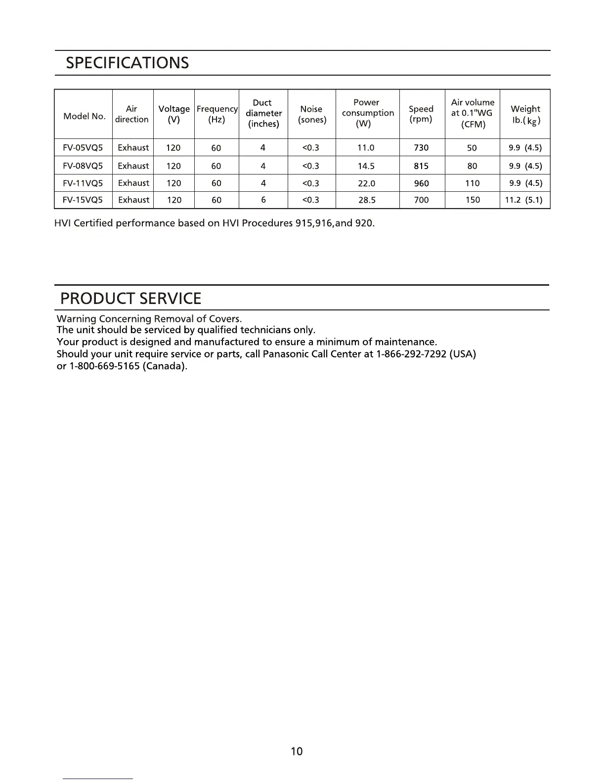 FV-15VQ5 Exhaust 120 60 6 <0.3 28.5