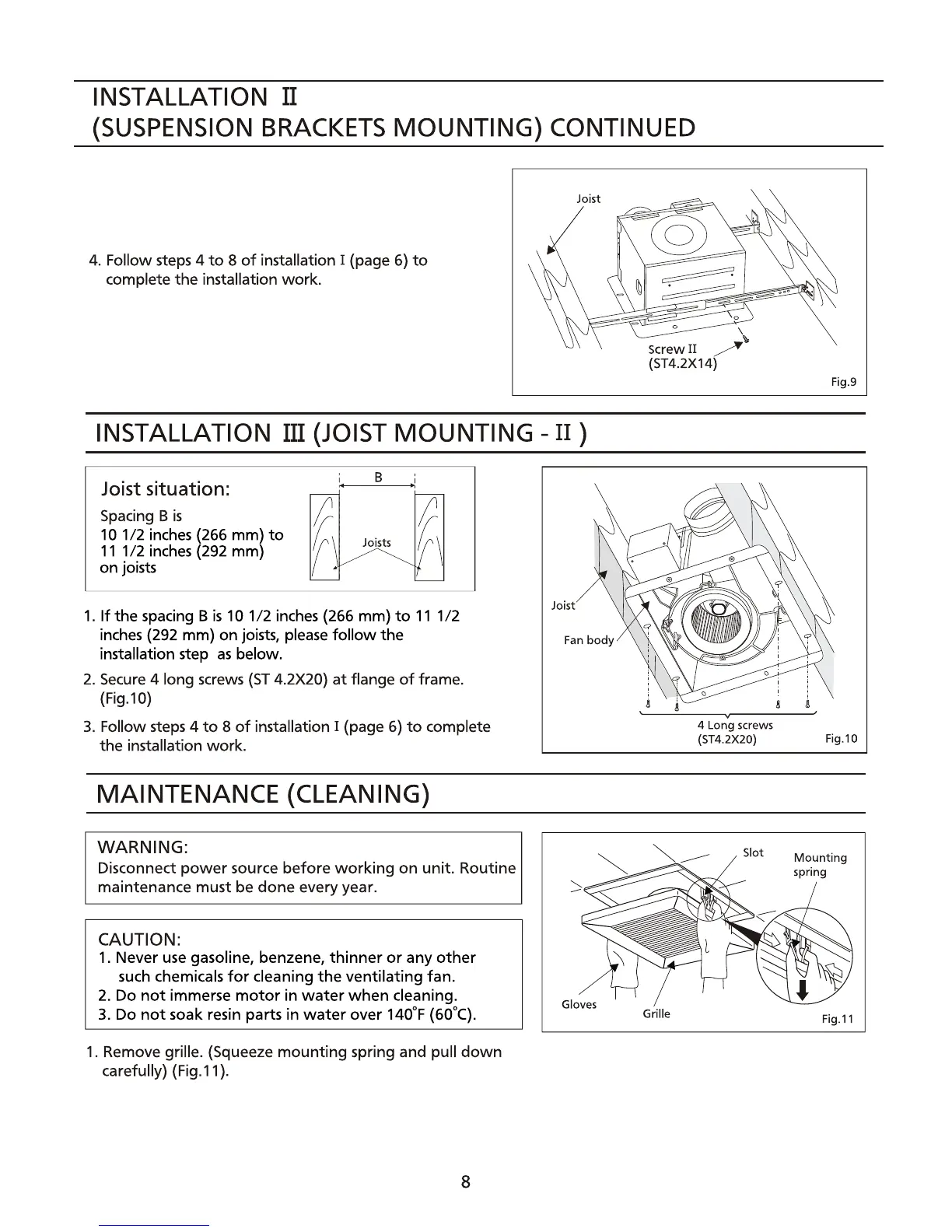 Panasonic FV-OSVQS - Installation III (Joist Mounting -II); Maintenance (Cleaning)