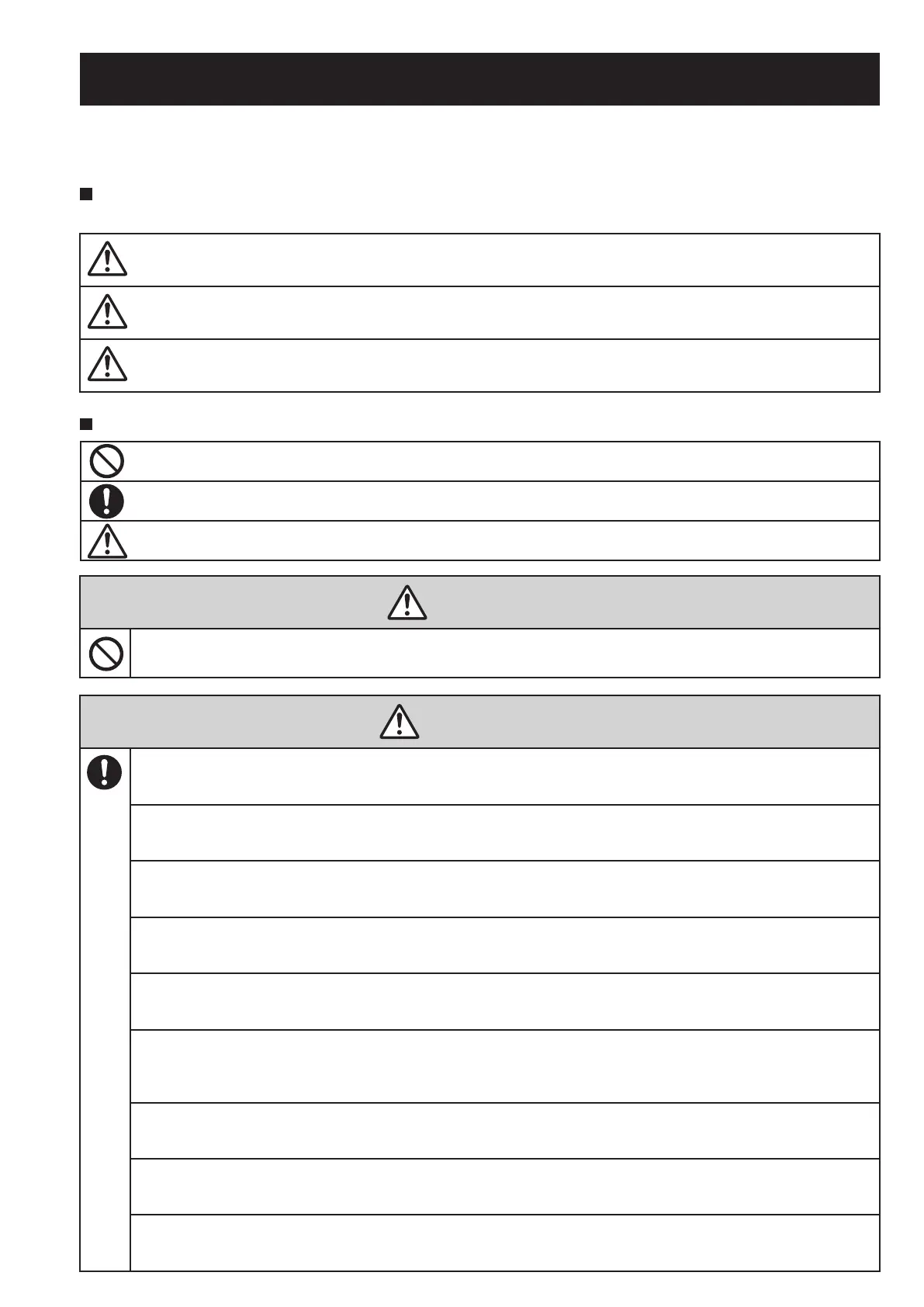 The following symbols are used to classify and describe the of instructions to be observed.