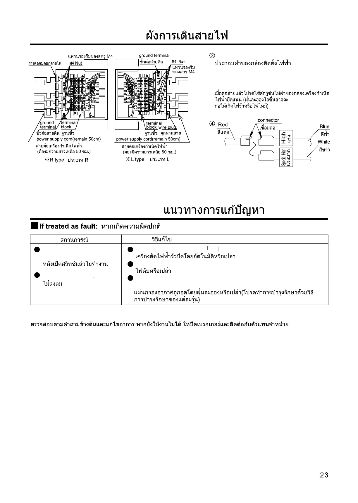 Check according to the above questions and correct the symptom. If it still doesn't work, shut off the breaker and