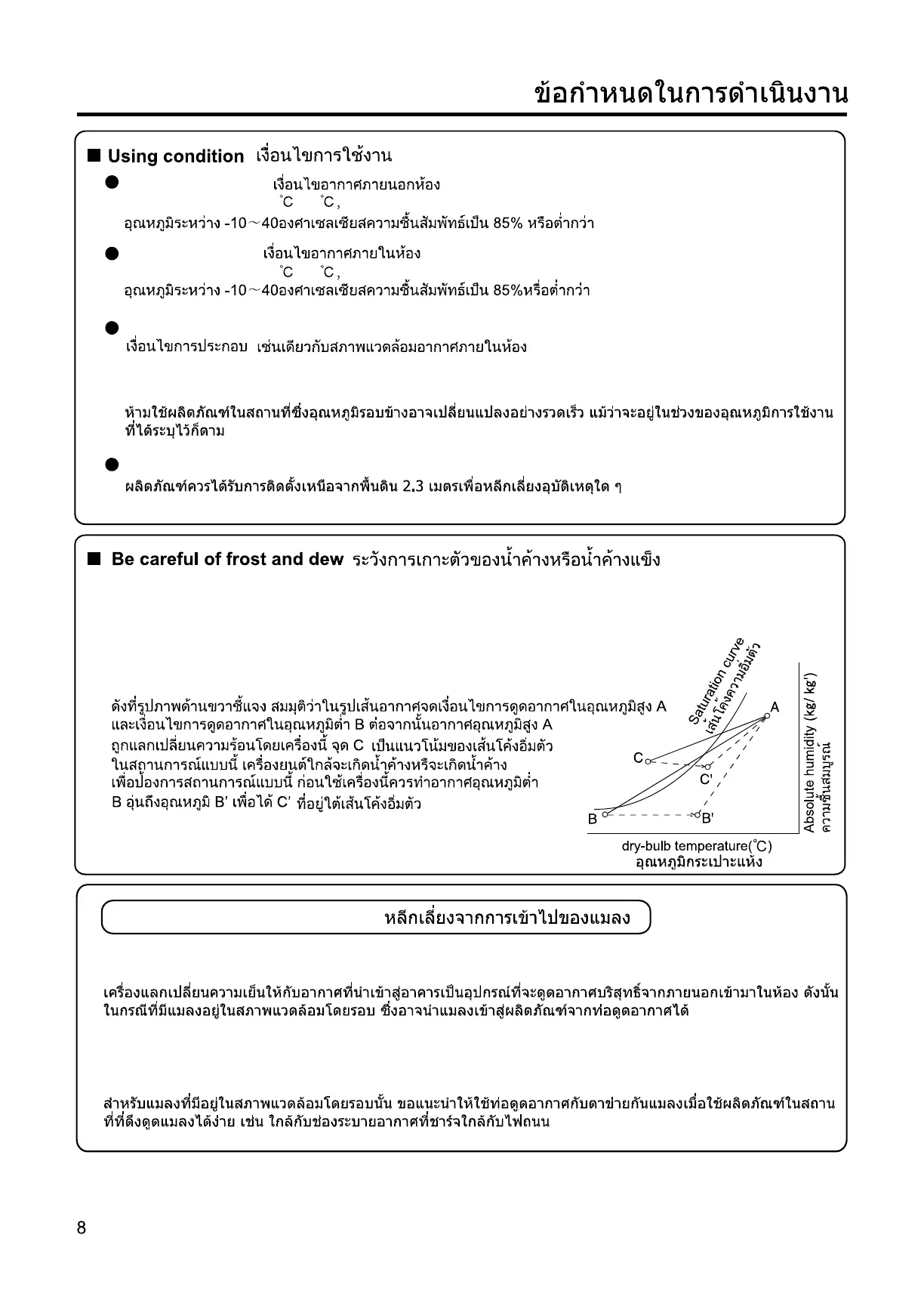The product is forbidden to use in locations where ambient temperature may sharply vary, even if it falls
