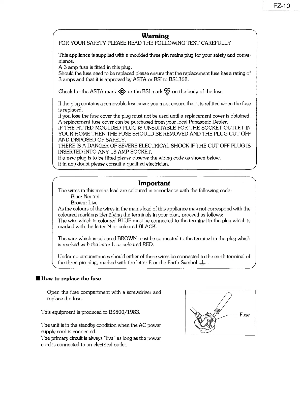 A replacement fuse cover can be purchased from your local Panasonic Dealer.