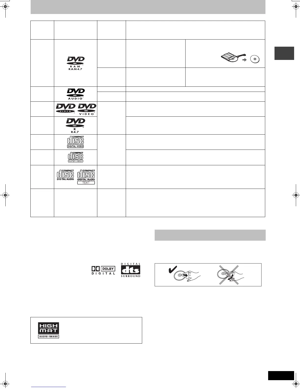 ≥It may not be possible to play the above discs in all cases due to the type of disc or condition of the recording.