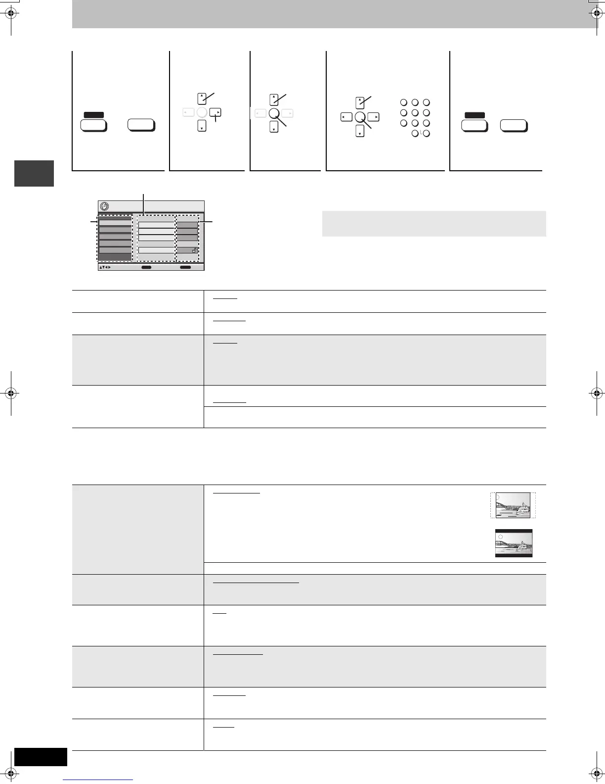 Shows Setup menu. Select the tab. Select the item. Make the settings. Press to exit.