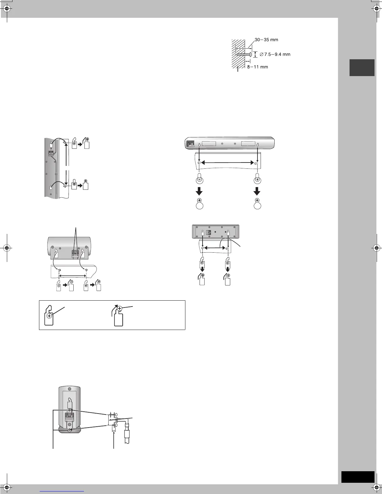 ≥When mounting the front and surround speaker to a wall, we recommend using a string (not included) to prevent it from falling (‹ page 5).