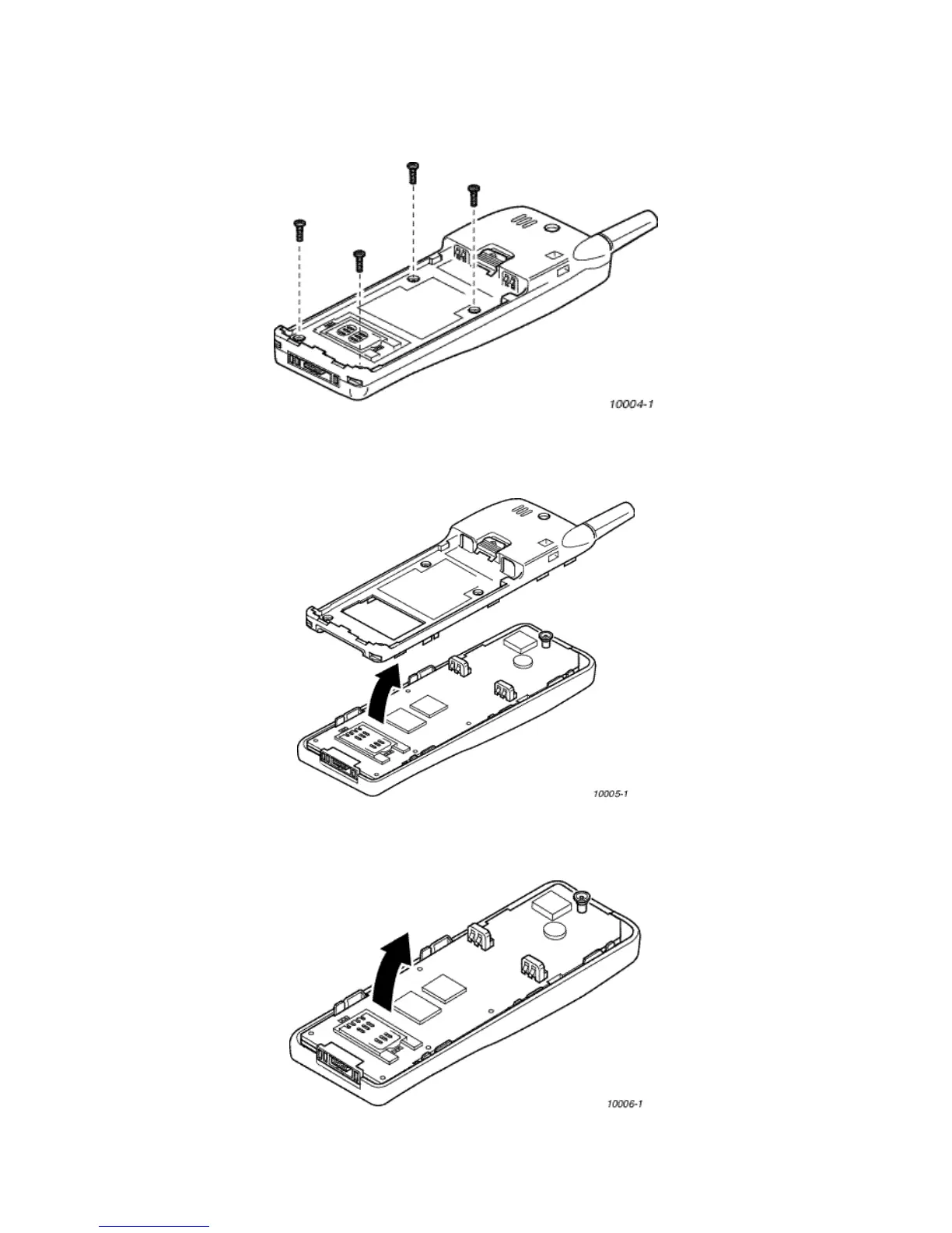 1. Remove the battery from the back of the telephone. Remove the four case screws located inside the battery compartment.