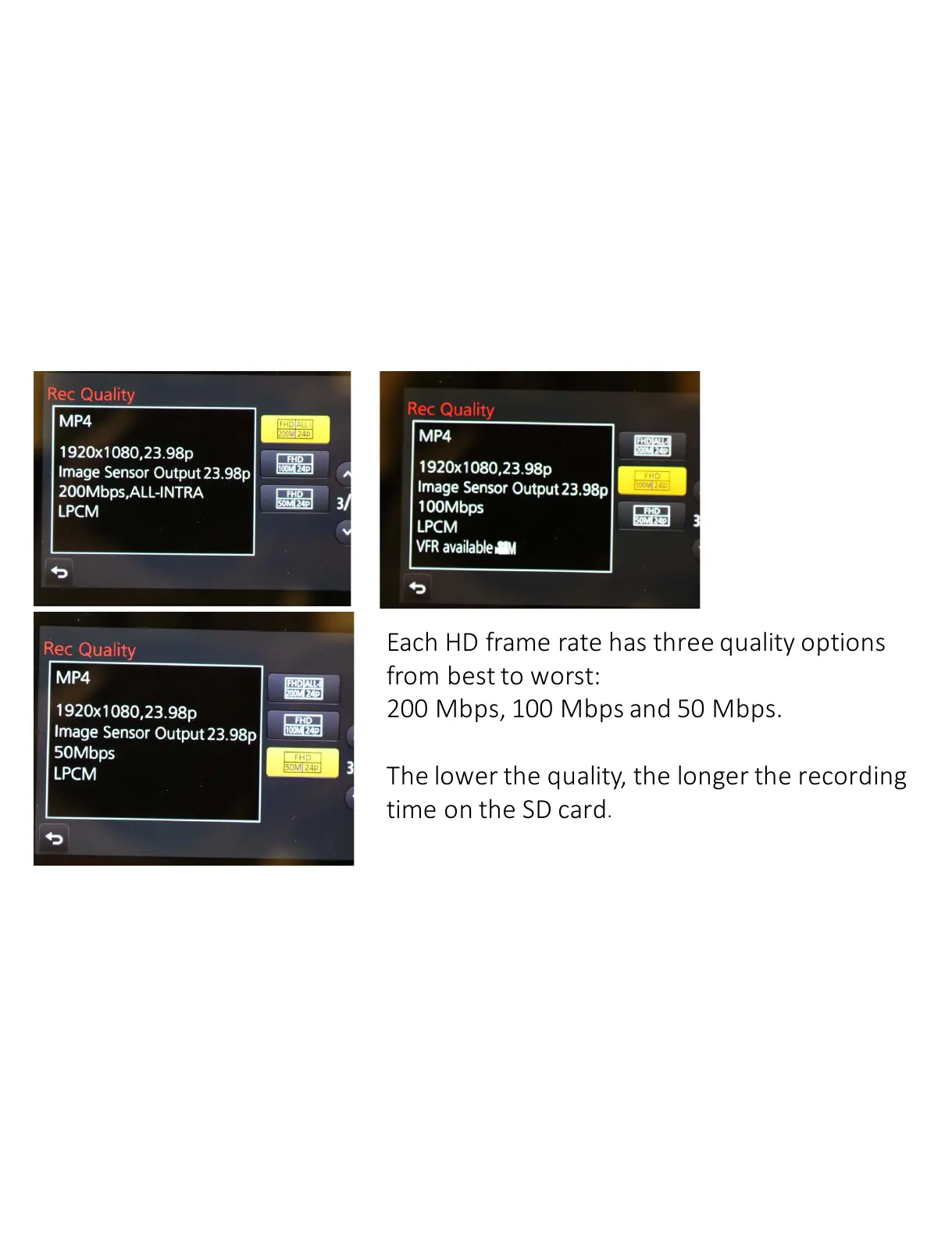 Panasonic GH4 - HD Quality Levels and Recording Time