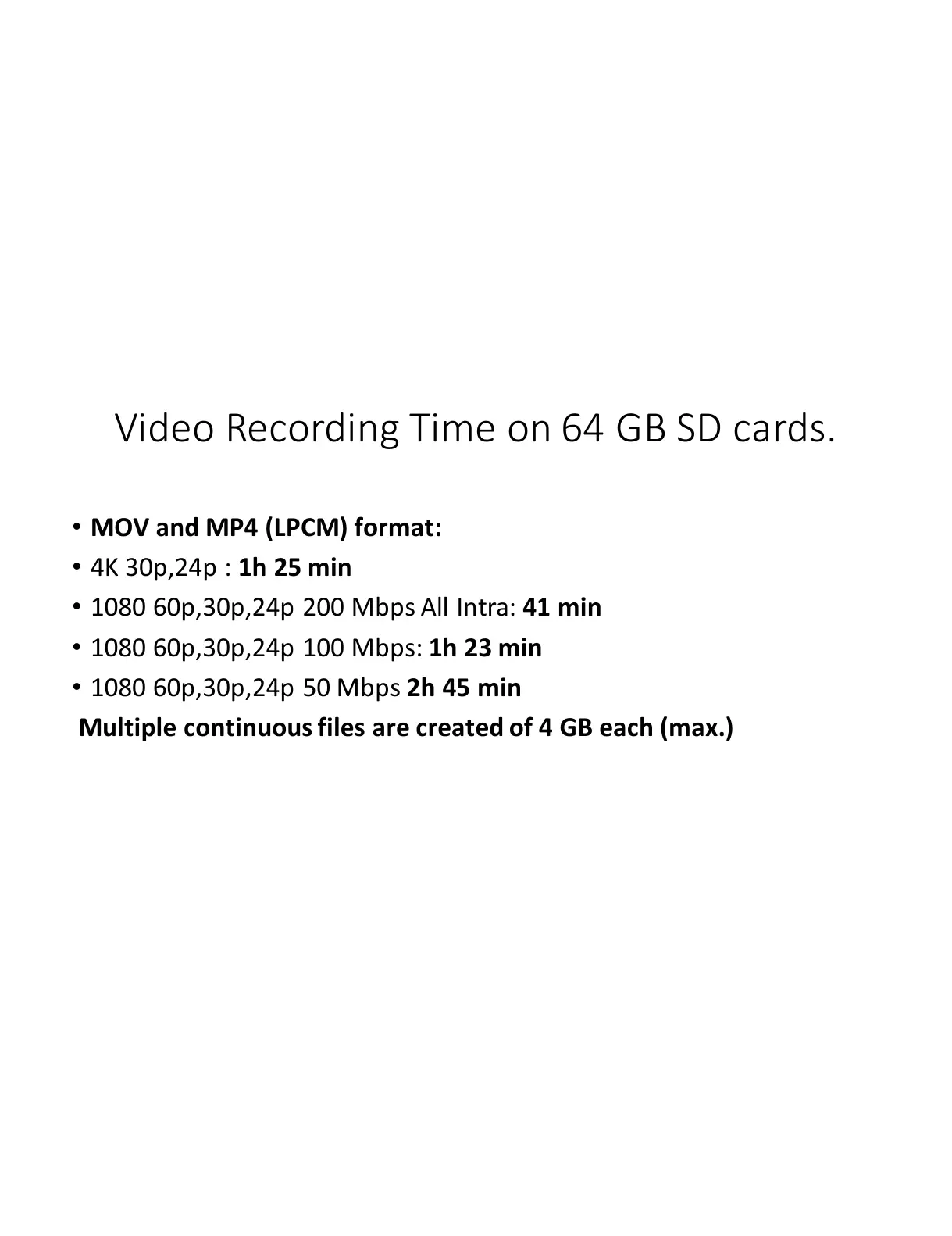 Multiple'continuous'files'are'created' of'4'GB'each'(max.)'