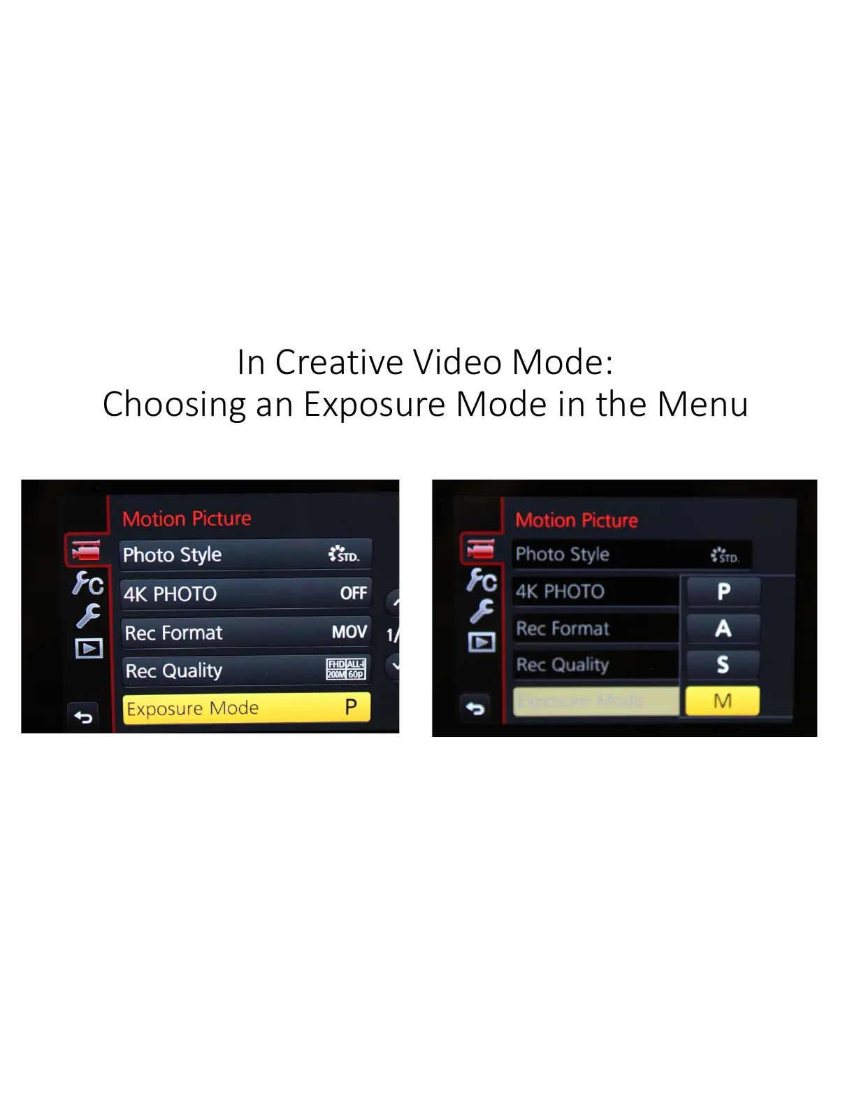 Panasonic GH4 - Menu Selection for Exposure Modes