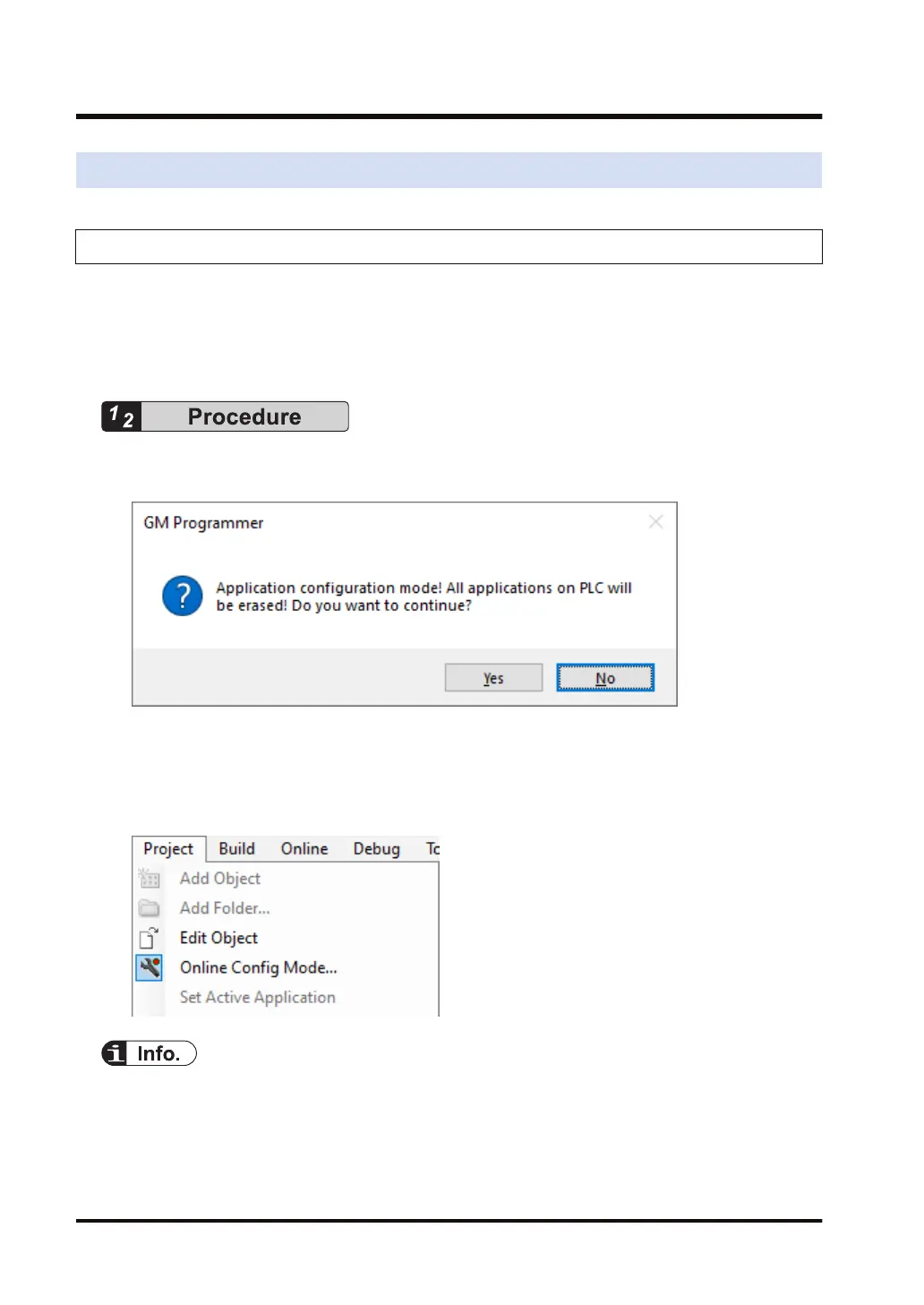 ● To cancel the online config mode, select Project>Online Config Mode from the menu bar