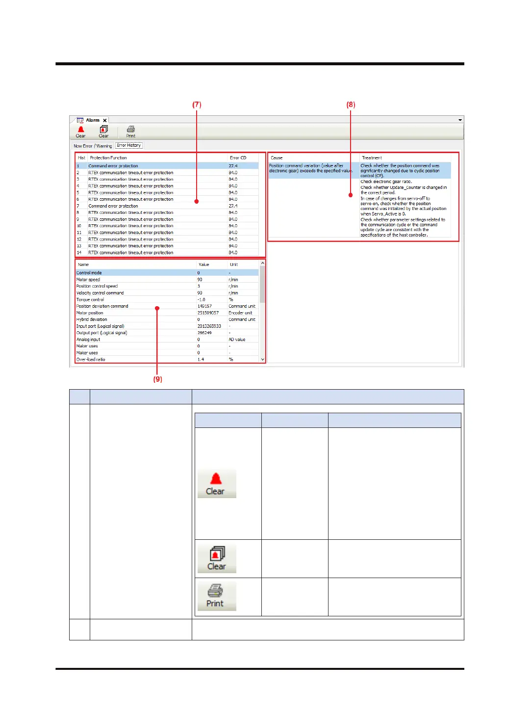 (2) Current error display area