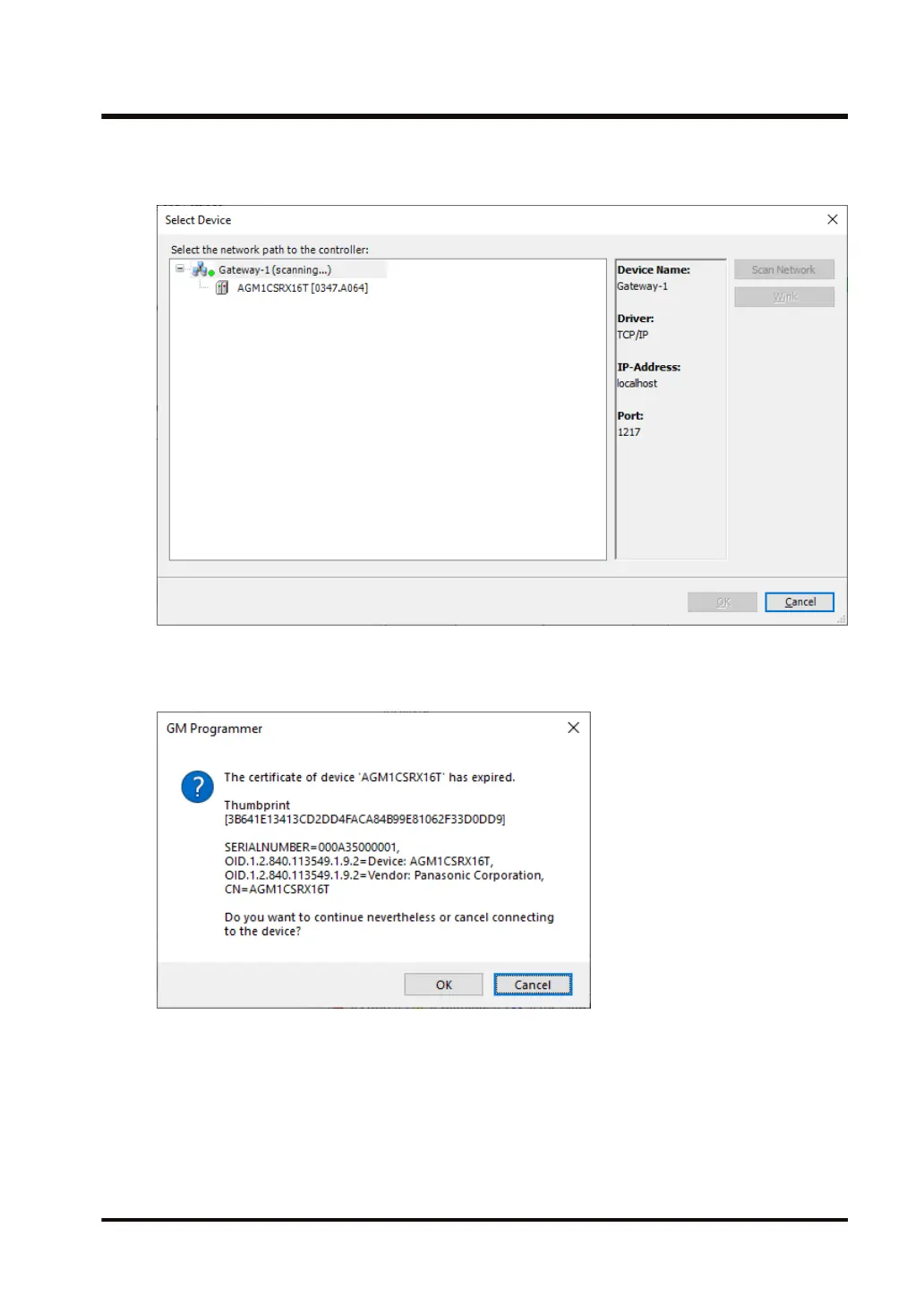 A message window will be displayed, indicating that the certificate of the GM1 controller is