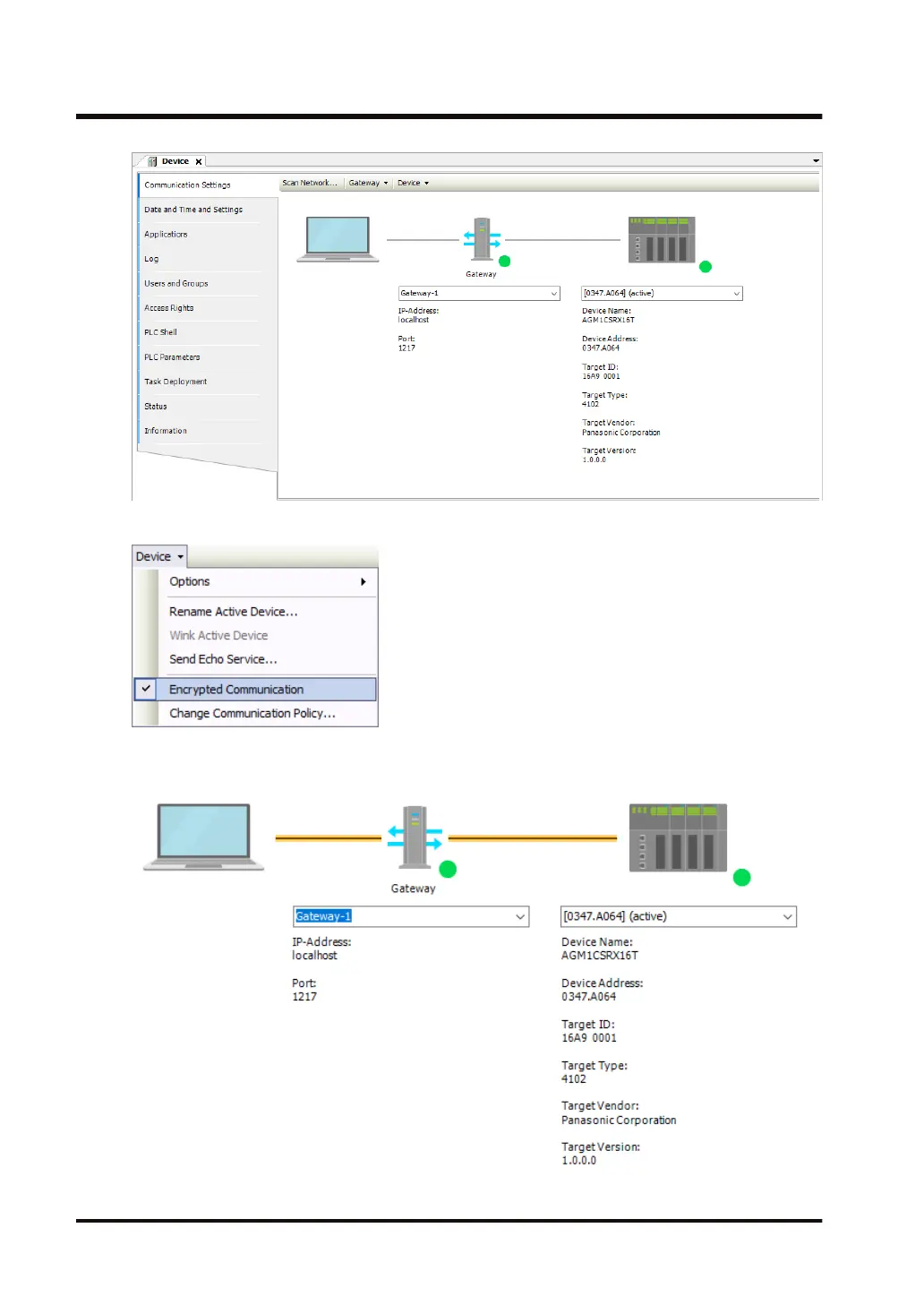 If "Encrypted Communication" is selected, the connection lines between the integrated