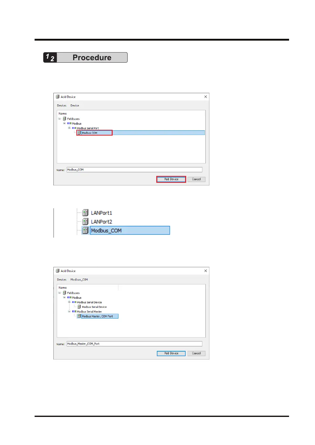 , COM Port" under "Modbus Serial Master" and click the [Add