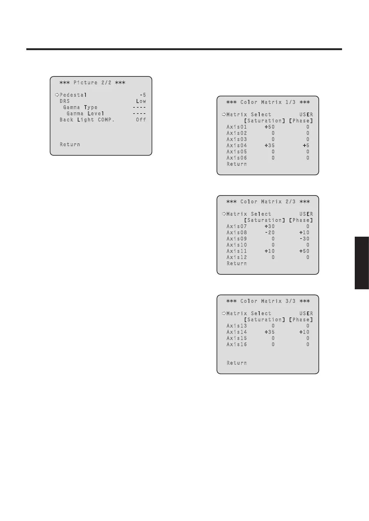 como a definição do item Contrast Mode, Gain ou Frame Mix.
