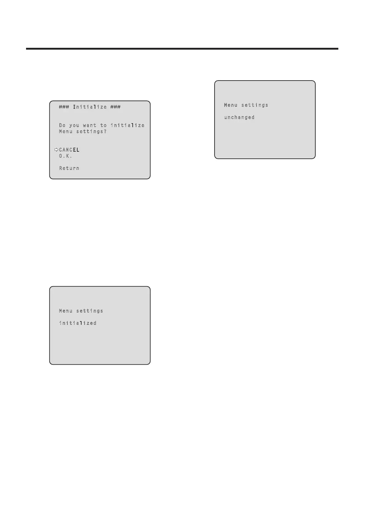 ecrã Initialize e a definição introduzida, o ecrã Menu