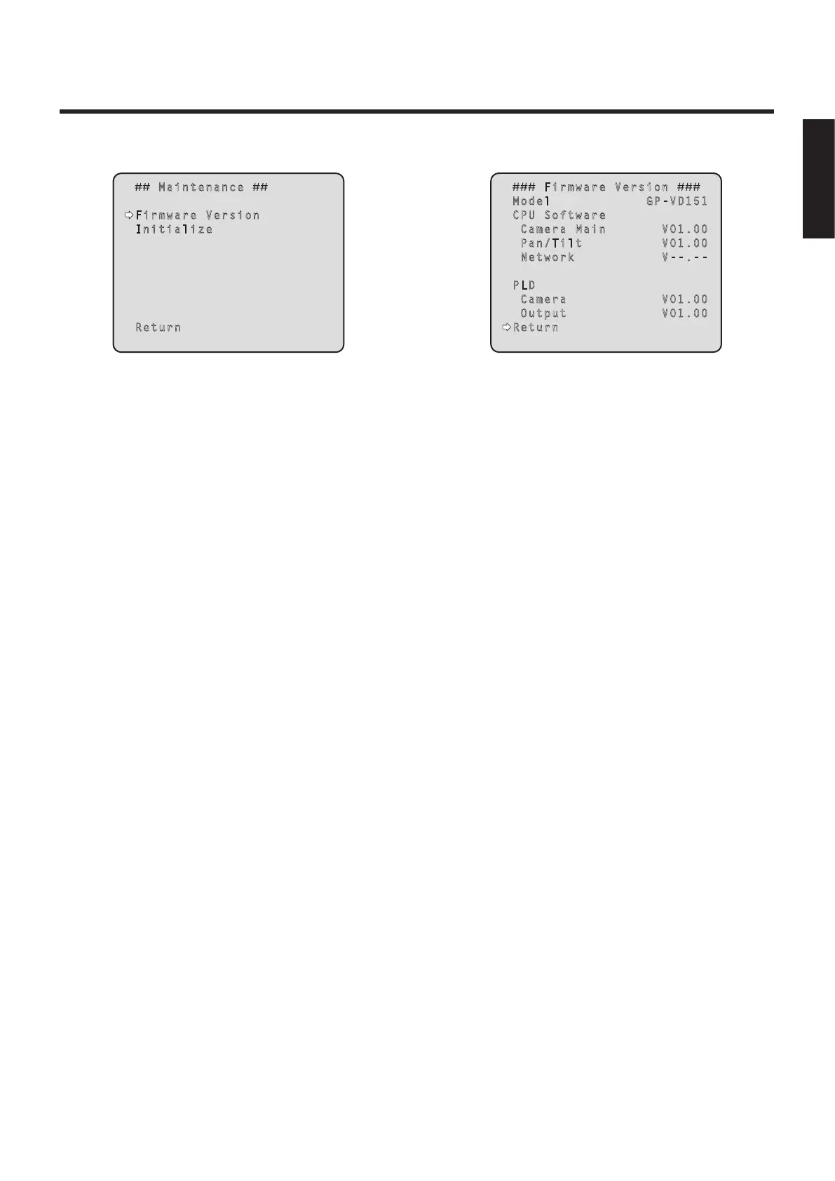Panasonic GP-VD151A - Maintenance Screen; Firmware Version Screen