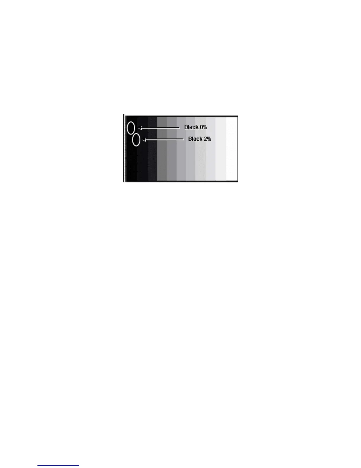 bright so that green pixel emission starts at black 2% area and no emission